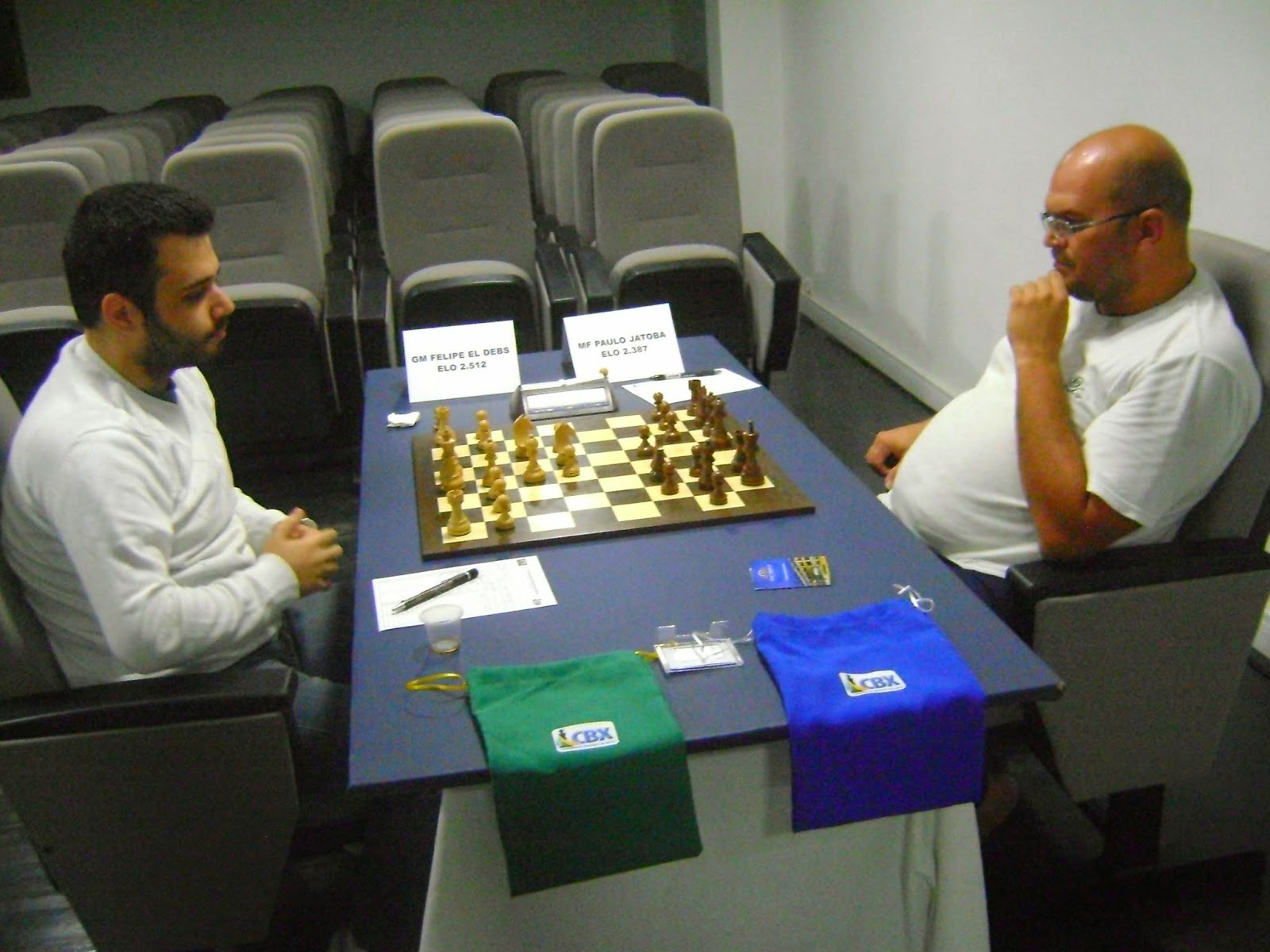 | O GM Felipe El Debs empatou de brancas contra o MF Paulo Jatobá numa interessante variante da Defesa Ìndia do Rei. |